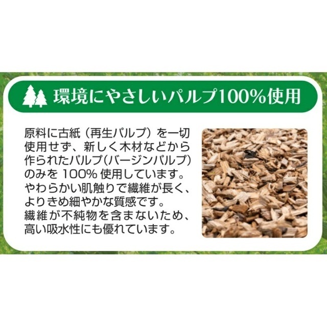 パルプ繊維が柔らかく繊維に不純物を含まず吸水性にも優れます